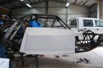 The dash is fibreglass with a carbon fibre look, Luke Erceg sells them. Looks great and dead easy to fit, looks better with the gauges in. Will take a better/new pic and update soon. Solid mounts are available to suit the Mendeola, but i wanted mounts. Mine use an off the shelf bush that fits neatly inside the moly tubing. Can get the part number if you like. Panel mounts are tabs that i made, probably would of been better if i used dzus on the big side pods as they get taken off more. William hepden did an awesome job of fibreglassing the bonnet and painting the panels jet black. Extractors being done at the moment so more pics to come.