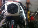 new radiator turned up, ended up using a rover v8 alloy radiator good price at 190 bucks it is 56mm thick and only 600 square. so a 15" thermo will fit nicely.