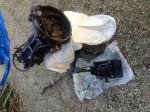 Block, crank, rods, manifolds, chemically cleaned head ready for rebuild and other parts.